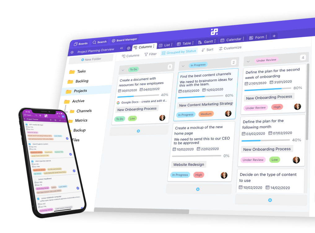 Columns, Table, Calendar, Gantt, Form, and List—you get to decide which view you want to use and when. Seamlessly switch between different views within the same folder, or create a new view every time you open up a new tab in Infinity.